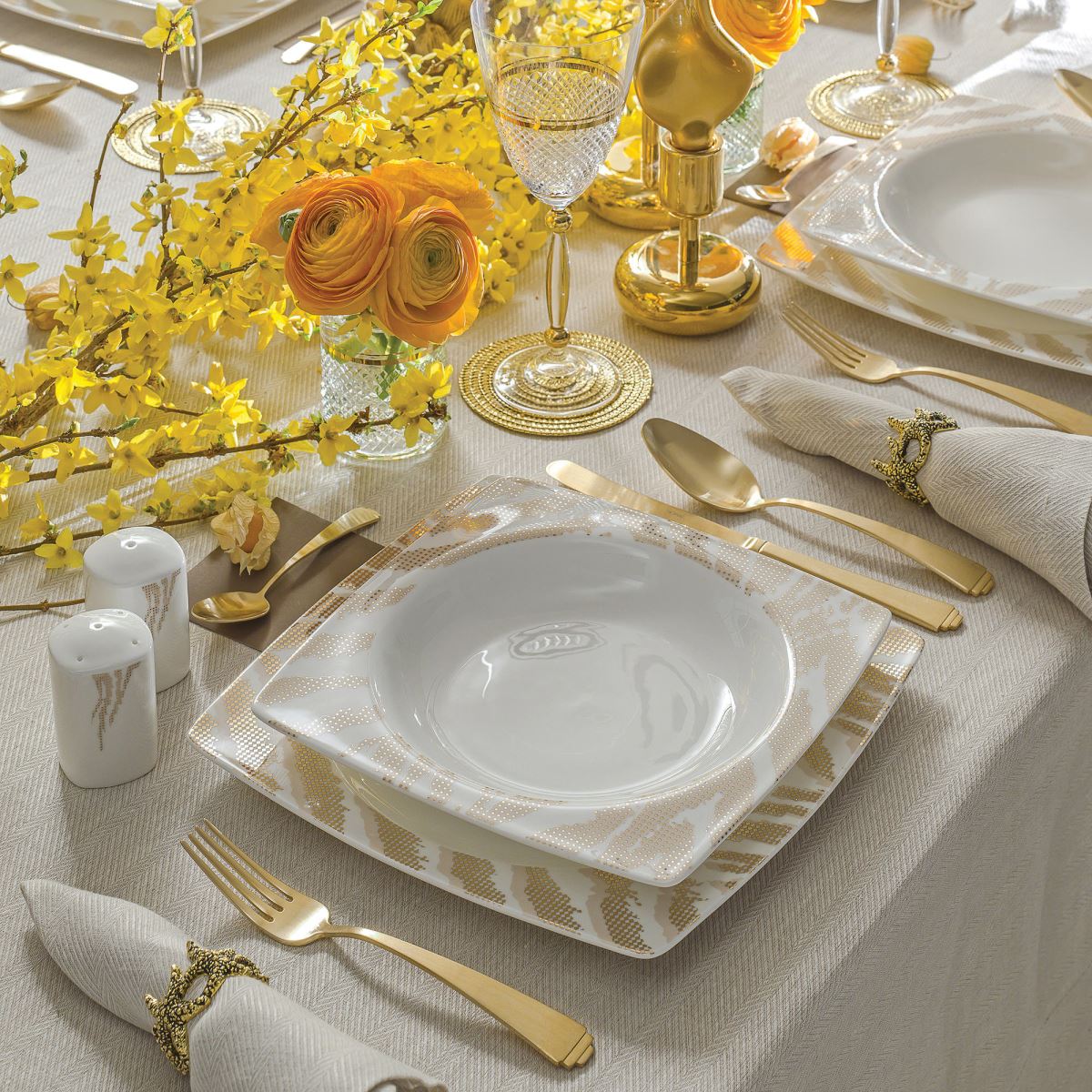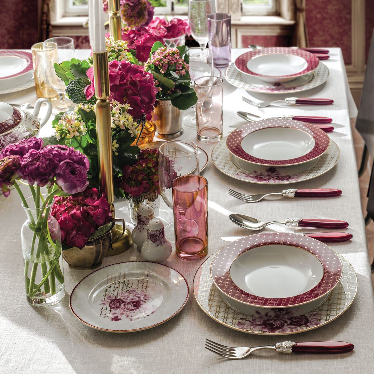 Mor ve yaldızlı Güral Porselen yemek takımları şahane dizaynları ile oldukça göz dolduruyor.GALERİ İÇİN FOTOĞRAFLARA TIKLAYIN