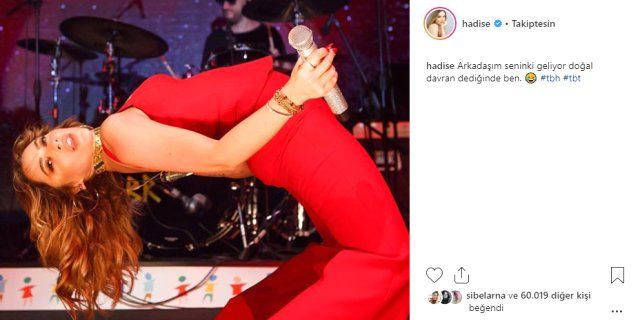 Ünlü şarkıcı Hadise sosyal medya hesabından paylaştığı fotoğraf ile takipçilerini gülme krizine soktu. Hadise fotoğrafına, “Arkadaşım seninki geliyor doğal davran dediğinde ben.” notunu ekledi.