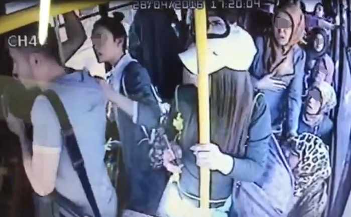 İddaya göre cinsel tacizci, cinsel organını otobüsteki kadın yolculara göstererek yolculuğunu sürdürüyordu. Bunun üzerine otobüsteki bir bayan bunu fark etti ve bağırarak cinsel tacizciye tokat attı. Bununla birlikte otobüsteki diğer kadınlar olayın şoku ile birlikte tacizci adama tekme tokat vurdular. Otobüsün şöförü ise şunları söyledi: “Ben olayı fark etmedim. Bir bağırma sesi duydum. Daha sonra otobüste bulunan kadın yolcular şahsa vurmaya başladı. Ben hemen yol kenarına çektim. O sırada durduğumuz yerde bulunan polis ekipleri olaya müdahale ettiler” dedi.”