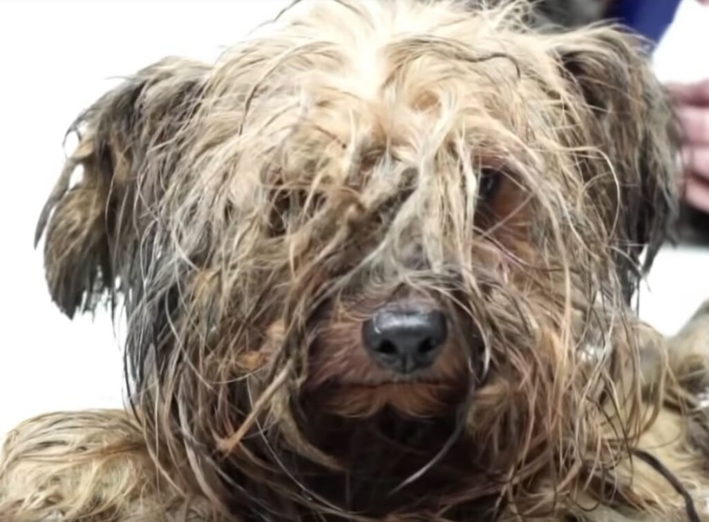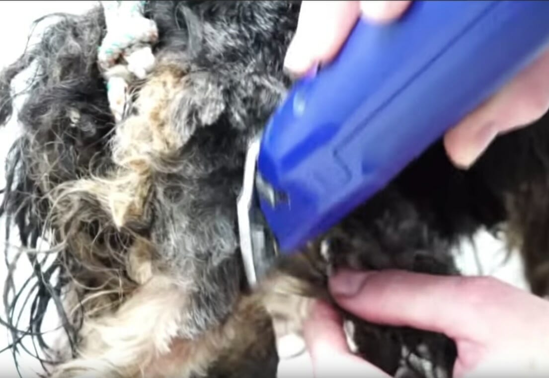 Önce köpeğin tüylerini kestiler sonra da güzelce yıkadılar.