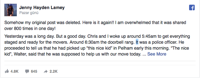 Jenny, Facebook’ta Walter hakkında bir gönderi paylaştı.