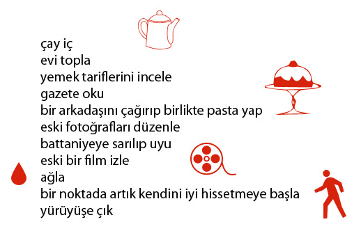 Hepimiz zaman zaman yaşarız, nedeni çok belli değildir, kendimizi sokağa atmak isteriz. Bu çokta yabancı bir olay değildir bizler için. Baş etmenin yolları vardır mutlaka, mesela kendinizi rahat edeceğiniz, bir ortam yaratabilirsiniz evinizin içinde. Hazırlayacağınız bir çiçek köşesi, sizin yüzünüzü güldürmeye yarayabilir veya sağda solda sürünen kitaplarınıza kitaplık yaptırıp kendinize okuma köşesi yapabilirsiniz. Çalışmayan bir bayan olsanız bile mutlaka bir çalışma masası ayarlayın kendinize, ev ekonomisinin değerlendirmesini bile bu özel köşenizde yapmaya çalışın. Hobiler edinmek re çok işinize yarayacaktır, neye yatkınlığınız varsa, yaşınız kaç olursa olsun kurslarına gidin.