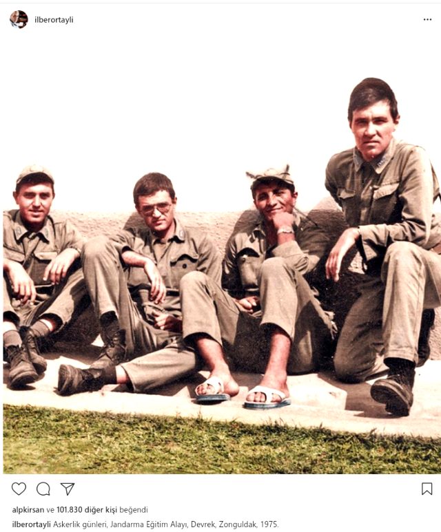 Sevilen tarihçi, akademisyen ve yazar İlber Ortaylı askerlik fotoğrafını paylaştı. Ortaylı yayınladığı kareye, “Askerlik günleri, Jandarma Eğitim Alayı, Devrek, Zonguldak, 1975” notunu düştü.