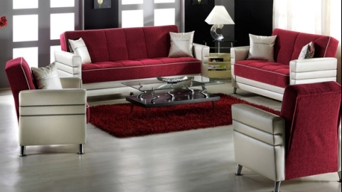 İpek mobilya’dan evinizin dekorasyonu için kırmızı, beyaz renklerle kombine edilmiş şık oturma grubu modeli.