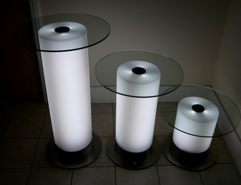 Her zaman cam tasarımlar modern dekorasyonun bir parcası olmuştur. Modern dizaynın yanında ışıklı cam sehpalar muhteşem bir ikili oluşturmuş.