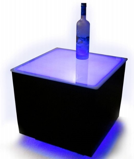 Mavi ışıklı tasarımıyla güzel kare sehpa modeli.