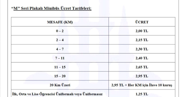 Zam gelmeden önce ise indi-bindi Minibüs ücretleri şu şekildeydi ;