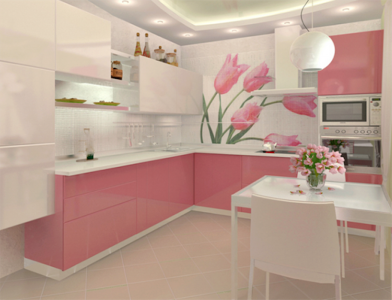 Gul Desenli Pembe Mutfak Modeli