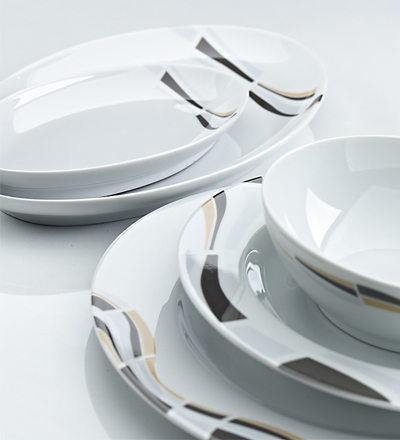 Jumbo siyah desenli yemek takımı tasarımı.