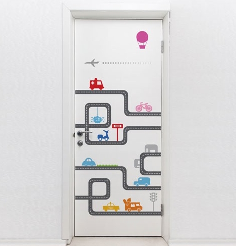 Otoban değil evinizin kapısı! Şık ve farklı bir kapı sticker modeli.