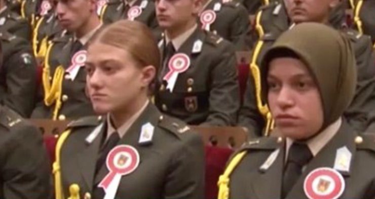 Kara Harp Okulu’ndaki Törende Milli Savunma Bakanlığı’nın kararıyla Türk Silahlı Kuvvetleri’ndeki (TSK) başörtü serbestisinin ardından Kara Harp Okulu tarihinde ilk kez bir başörtülü öğrenci de yeni eğitim öğretim yılına başladı. Daha önce Hava Harp Okulu’na Merve Gürbüz adlı bir öğrenci de başörtülü kabul edilmişti.
