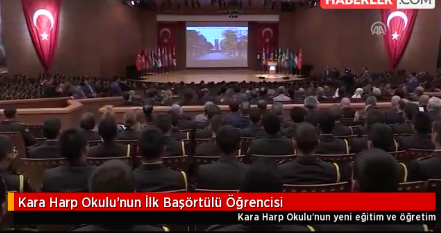 Kara Harp Okulu’ndaki Törende Milli Savunma Bakanlığı’nın kararıyla Türk Silahlı Kuvvetleri’ndeki (TSK) başörtü serbestisinin ardından Kara Harp Okulu tarihinde ilk kez bir başörtülü öğrenci de yeni eğitim öğretim yılına başladı. Daha önce Hava Harp Okulu’na Merve Gürbüz adlı bir öğrenci de başörtülü kabul edilmişti.
