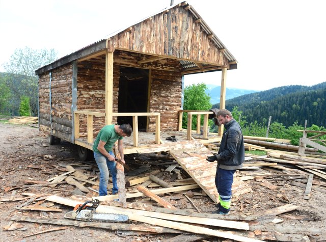 Yapının mimarisinin Karadeniz’e uygun olduğunu vurgulayan Bayraktar, “Ağacın iç kısmını kullanmadık, sadece dış kabuk kısımlarını kullandık ki doğaya uygun olsun. Tahta belki daha güzel görünürdü ama eskiden evler bu şekildeydi.” diye konuştu.