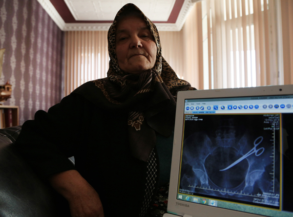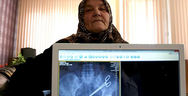 67 yaşındaki Hanım Özgül 5 yıl önce rahim kanseri ameliyatı oldu. Kanserden kurtuldu ama artık yeni bir sağlık sorunu vardı. Özgül:”Her ay kontrole gittim. Kontrolde hiçbir şey çıkmadı. 6 senedir benim midem ağrıyor, karnım ağrıyor. Hiçbir şey yapamıyorum. ” Özgül, ameliyat sırasında karnında unutulan o makasla tam 5 yıl yaşadı. En sonunda şikayeti artınca başka hastaneye gitti. Röntgeni çeken görevli makası önce Özgül’ün cebinde zannetti.