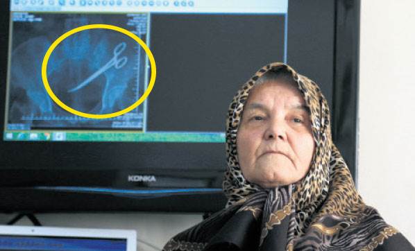 67 yaşındaki Hanım Özgül 5 yıl önce rahim kanseri ameliyatı oldu. Kanserden kurtuldu ama artık yeni bir sağlık sorunu vardı. Özgül:”Her ay kontrole gittim. Kontrolde hiçbir şey çıkmadı. 6 senedir benim midem ağrıyor, karnım ağrıyor. Hiçbir şey yapamıyorum. ” Özgül, ameliyat sırasında karnında unutulan o makasla tam 5 yıl yaşadı. En sonunda şikayeti artınca başka hastaneye gitti. Röntgeni çeken görevli makası önce Özgül’ün cebinde zannetti.