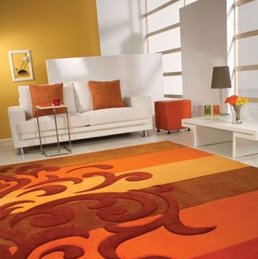 Turuncu renklerden oluşan modern deseniyle şık Kaşmir halı modeli.