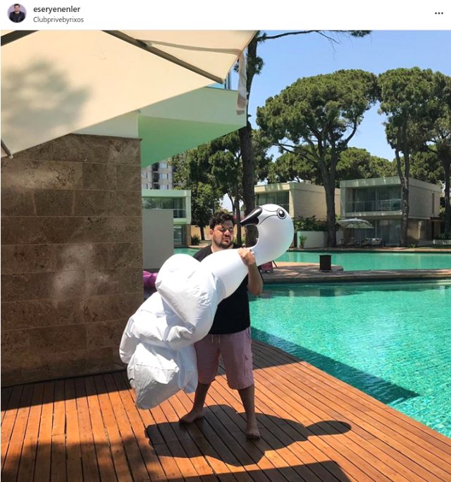 Düğün sonrası lüks bir otelde tatil yapan çiçeği burnunda çift, sosyal medya hesaplarından havuz fotoğraflarını paylaşmıştı. Havuzda flamingo ile poz veren Eser Yenenler, sosyal medyada alay konusu olmuştu. Yenenler, “Sen flamingoyu taşı, daha kolay olur” yorumlarına maruz kalmıştı.