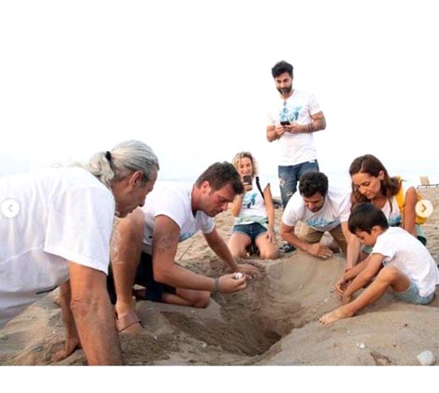 Kıvanç Tatlıtuğ, eşi Başak Dizer ve oyuncu arkadaşlarıyla beraber Antalya’da yavru caretta carettaların denize ulaşmasını sağladı. Tatlıtuğ’a Sedef Avcı ve Kıvanç Kasabalı’nın oğlu Can da eşlik etti.