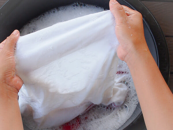 Altı aspirini toz haline getirip suda karıştırın. Kıyafetlerinizi karışımın içinde 30 dakika bekletin. Son olarak çamaşır makinenizle kıyafetlerinizi her zamanki gibi yıkayın. Kıyafetinizdeki lekenin çıktığını göreceksiniz.