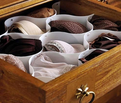 Giyim kuşam aslında bizim içimizden başlar, güzellik bizim öncelikle bizim giymiş olduğumuz çamaşırlarla başlar. Giymiş olduğumuz çamaşırlar kıyafetimizin üzerimizde çok daha güzel durmasını sağlayacaktır. Doğru iç çamaşırı tabi ki. Peki bu doğru iç çamaşırı nasıl saklanmalıdır? Sütyenlerimizi nasıl saklamalıyız? Gögüs şeklini bozmayacak şekilde çekmeçelerimizde bunlara yer ayırıyoruz, bunlar için efektif çekmeçeyi kullanmak adına göğüslerin en sivri kısımlarını diğer sütyenlerin kaplayacak şekilde üst üste koyabiliriz. Hem göğsümüzün sütyendeki göğüs kısmının şekli bozulmayacak hem de çekmecemizde çok fazla yer kaplayamacaktır. Dolayısı ile tamamen bütün sütyenlerimizin göğüs kısımları üst üste gelecek şekilde çekmecemizde saklayabiliriz.