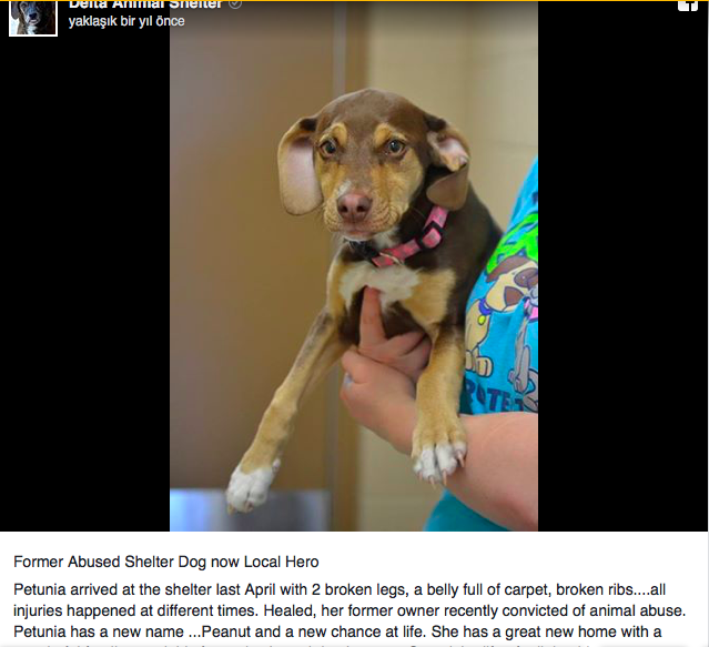 3 yaşındaki Peanut kendisine şiddet uygulayan sahibinin ellerinden 2016 yılında kurtarıldı. Delta ismindeki barınağa getirildiğinde durumu çok kötüydü.
