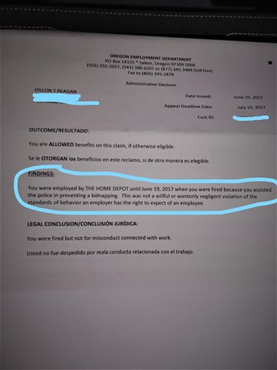 KGW’nin aktardığına göre 32 yaşındaki Dillon polisle iş birliği yaparak bir kızın hayatını kurtardığı için işinden kovuldu.