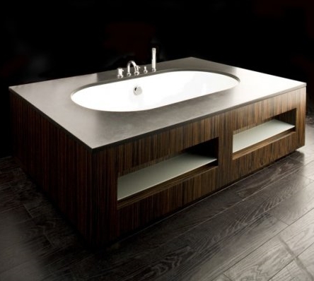 Ahşap tasarımıyla modern tarzda harika görünen bir küvet modeli. Uyum çok hoş.