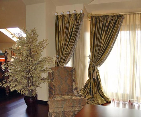 Linens’in salonlar için tasarladığı şık ve gösterişli rustik perde tasarımı.