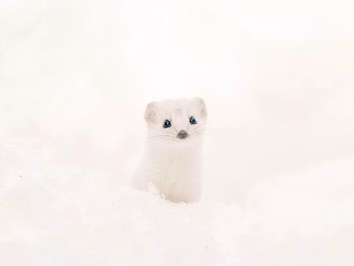 Lizuna, Sibirya, Kuzey İskandinavya veya Hokkaido gibi kuzey iklimleri tercih eden sansar ailesinden bir türdür. Kendi türlerinin aksine Lizuna, kış koşullarında kamufle olmak için tamamen beyazdır. Şu sevimliliğe bakın!