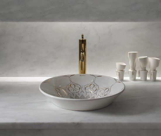 Altın ve platin banyo tasarımı, egzotik bir zenginlik getiren, lavabo stili..