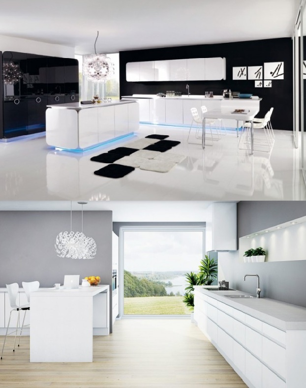 Siyah ve beyazın buluşması insanları adeta büyülüyor. Sadece mutfaklarda değil diğer evin bölümlerinde de siyah ve beyazın kullanılması eve şıklık getiriliyor.