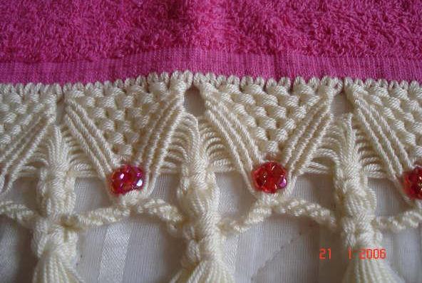 Boncuklu makrome havlu kenarı,makromeyi düğümlerine boncuk eklediğiniz böyle güzel görüntüler cıkıyor ortaya.
