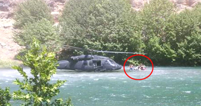 Diyarbakır’dan havalanan askeri helikopter, Eğil ilçesine hareket ederek, bölgeye geldi. Helikopter pilotu, 12 kişinin nehrin içinde kaldığını görünce, helikopteri nehre indirdi ve mahsur kalan 12 kişi kurtarıldı.