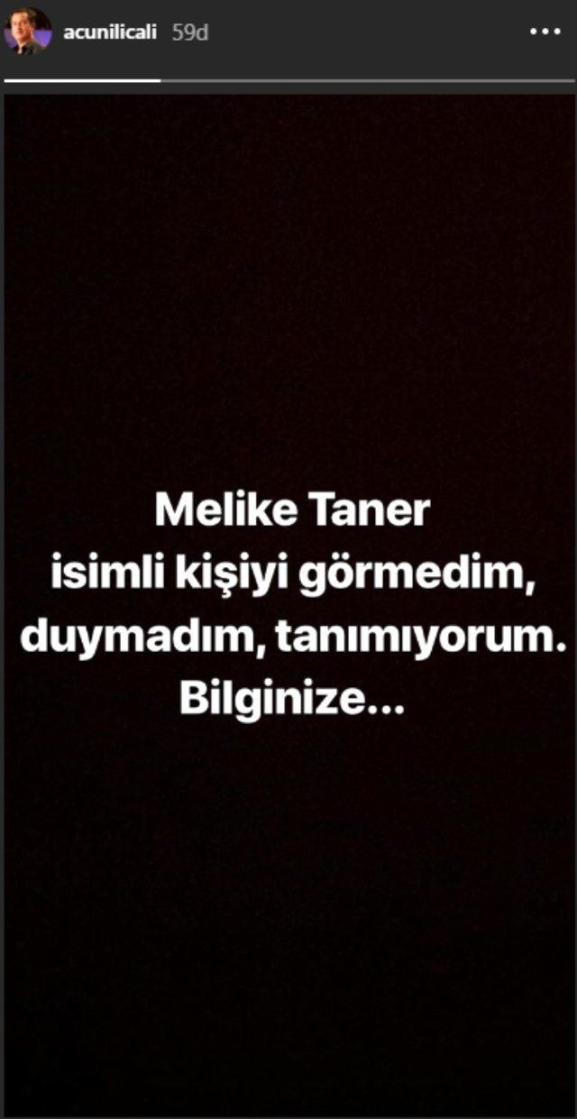 Geçtiğimiz yıl Şeyma Subaşı’ndan boşanan Acun Ilıcalı, yeni sevgilisi olduğu iddia edilen Melike Taner hakkında sosyal medya hesabından açıklama yaptı.