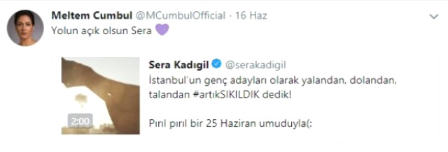 Meltem Cumbul sosyal medya hesabından üst üste attığı tweetlerle CHP’ye oy vereceğinin sinyalini verdi.