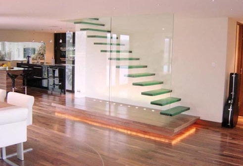 Yeşil merdivenin yanında kullanılan şefaf paravan, merdivenin formunu olduğundan şık göstermiş.