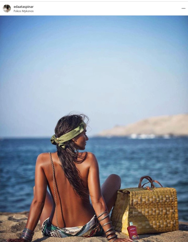 Kendi adını taşıyan markası ile moda ikonu olan Eda Taşpınar, Yunanistan’ın gözde tatil mekanı Fokos Mykonos adalarından attığı fotoğraf ile takipçilerini mest etti. Fit vücudu bronz tenleriyle hemcinslerini kıskandıran sosyetik güzel Eda Taşpınar tatil ile işi aynı anda götürüyor. Hem tatilin keyfini çıkaran Eda Taşpınar kendine ait kozmetik ürünlerinin tanıtımını yapıyor. Son paylaşımında bronzlaştırıcı kremin tanıtımını yapan Taşpınar, üstsüz fotoğrafıyla takipçilerini heyecanlandırdı.