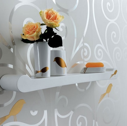 Modern tarzıyla banyoya şık bir hava verecek mini banyo rafı.