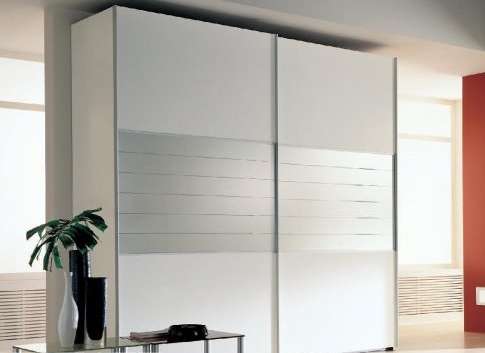 Kapakları raylı olan tasarımıyla şık ve modern tarz beyaz gardrop örneği.