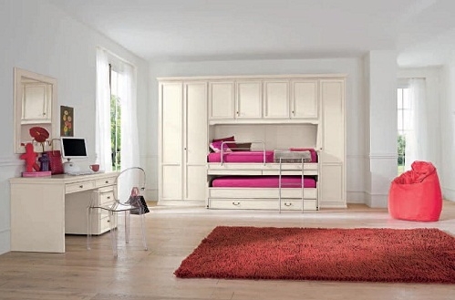 Dolap içine yerleştirilmiş, gömme yataklar seçerek çocuklarınızın oyun oynayabileceği alanlar yaratmanız mümkün. Tıpkı, bu ranzalı gömme dolap modeli gibi.