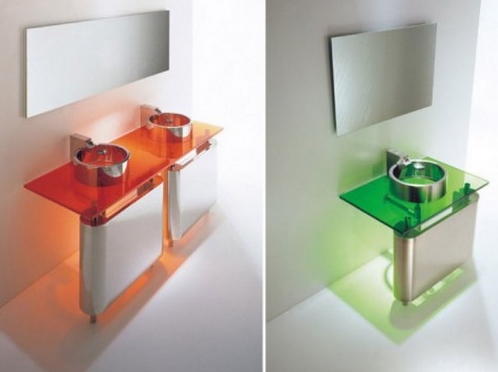 Renkli aydınlatmalı modern tasarımıyla banyolara renk katacak bir lavabo modeli