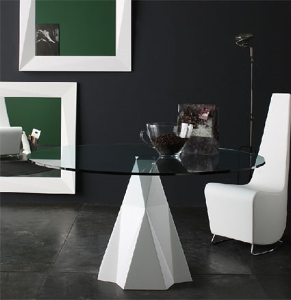 Modern tarz tasarımıyla yuvarlak yemek masası örneği.
