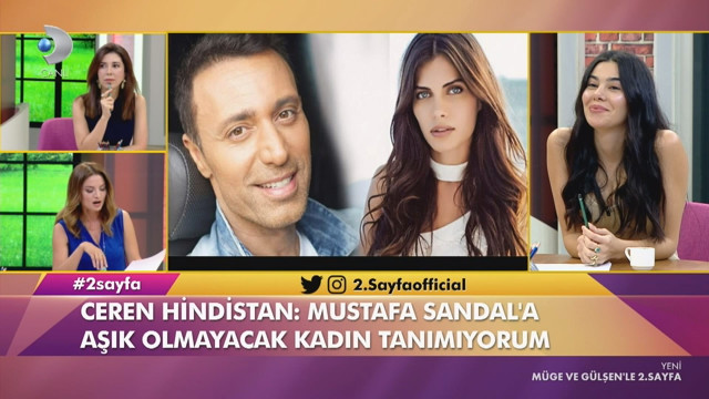 Oyuncu Ceren Hindistan, dün Kanal D ekranlarında yayınlanan ‘Müge ve Gülşen’le 2. Sayfa’ programına konuk oldu. Programın sunucularının yayın öncesi konuştuğu Hindistan, Mustafa Sandal’ın kendisine attığı özel mesajları okuttu.