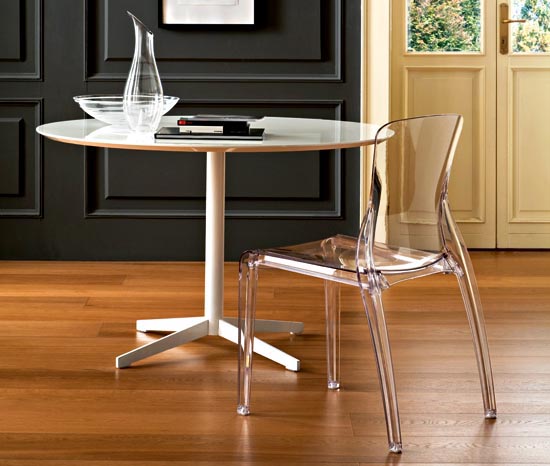 Şeffaf plastik sandalye modern mutfaklarınızı tamamlayacak nitelikte.