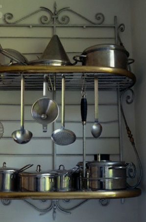 Mutfak raf tasarımlarında ferforje modelli mutfak raf modelinede rastlamanız mümkün. Gayette şık ve güzel durmuş duvarda.