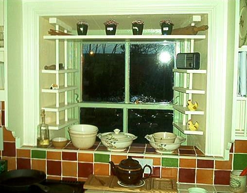 Cam kenarına konulmuş, mutfağa güzel bir hava katmış bir mutfak rafı.