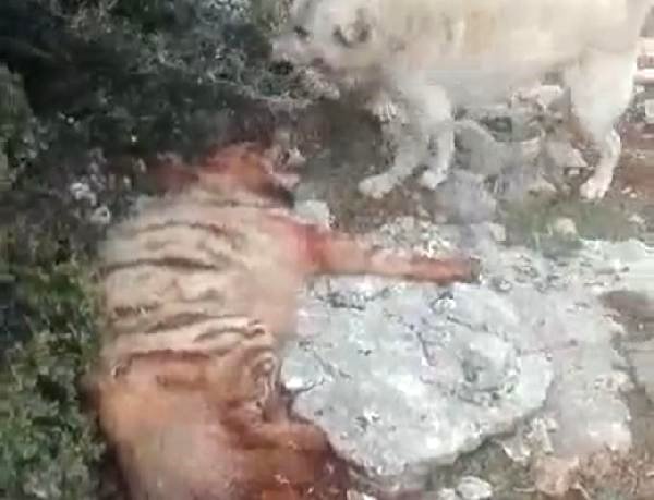 Adıyaman’da gözü dönmüş caniler, nesli tükenme tehlikesi altında olduğu için Dünya Doğa ve Doğal Kaynakları Koruma Birliği’nce ‘kırmızı liste’ye alınan çizgili sırtlanı köpeklere boğdurdu.