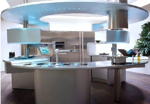 İlginç tasarımı olan oldukça farklı görünen bir oval mutfak tezgahı modeli.