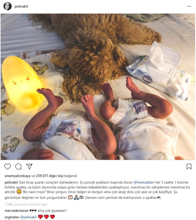 “Biz nasıl mıyız? Biraz yorgun, biraz dalgın ve durgun ama çok sevgi dolu çok aşık ve çok keyifliyiz. Şu görüntüye değmez mi tüm yorgunluklar? (Tamam sizin yerinize de kokluyorum o ayakları)