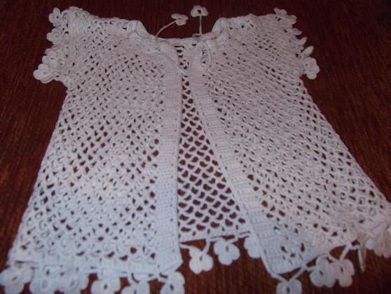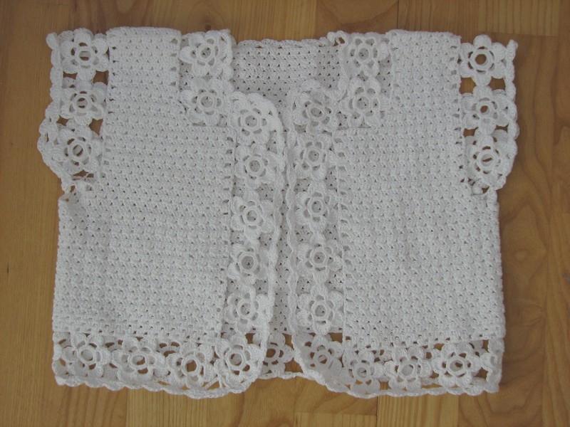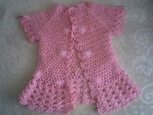 4 nolu örgü şişine önce beyaz iplikle 80 ilmek atıp başlayın, 6 sıra haroşa örgü yapın. Haroşa örgünün 6. sırasına geldiğinizde sağ tarafın yaka ucuna 1 tane düğme iliği koyun. 7. sıra başına geldiğinizde 7 ilmeği sol ön bantı yapmak için haroşa örgü yapın. Bir sonraki 12 ilmeği (sol ön) düz örgü olarak örün. 13. ilmeğe reglan kol artırımı içinayarlanan motif şemasının, reglan kol çizgi ilmeği gelecek biçimde yapın. Sonraki sıradaki 7 ilmeği (sol omuz) düz örgü yapın. 8. ilmeğe aynı biçimde şemayı yapın. Sonraki 24 ilmeği arka yapmak için düz örgü yapın. 25. ilmeğe aynı biçimde şemayı yapın.7 ilmeği (sağ omuz) düz örgü yapın. 8. ilmeğe aynı biçimde şemayı uygulayın. Bir sonraki 3 ilmeği düz örgü yaparak geri dönün. Gerideki kalan ilmekleri (sağ ön ve bant) bekletın. Bundan sonraki sırada ilmekleri olduğu şekilde örün. Sıranın sonunda sol ön ilmeklerinden ayırıp 9 ilmek ve ön orta ilmekleri (bekletin) geri dönün. Sonraki bölümlerde motif şemasını aynı iki yanlardan her sıra sonunda daha önce beklemeye aldığınız ilmeklerden 3’er tane ilmeği düz örgü olarak örgüye ekleyin. 8 sıra sonunda daha önce beklemeye aldığınız ön ilmekleri bitirmiş olacaktır. Daha sonraki sıralarda ön bant ilmekleri olan (7’şer ilmek) haroşa örgü, yapıp ilmekler ise düz örgü ve aynı örün. Bu arada sağ ön bant örgüsünün başından sonrasını12. sırasında 2. iliği yapın. (Sonraki sıralarda sağ ön bant üstüne her 17. ve 23. sıralarda bir (3. ve 4. ilik) 1 ‘er ilik yaparak örmeyi sürdürün .) Örgü uzunluğu yakadaki haroşa örgüden sonra 11 cm. – 28 sıra olduğunda, 29. sıra başında sol ön bant ilmekleri ve sol ön yapmak için 20 ilmeği tekrar bekletin.. Daha sonra sıradaki 40 ilmeği sol kol için örgü şişinin üzerinde bırakın. Sonraki 42 ilmeği arka için yine bekletin. Sıradaki 40 ilmeği sağ kol için örgü şişinin üzerinde bırakın. Geride kalan ilmekleri sağ ön için yine bekletin Kolları yapmak için örgü şişinde ayırdığınız olan ilmekleri, 6′ şar sıra haroşa örgü yapıp bir defada kesin. Beklettiğiniz sol ön, arka ve sağ ön ilmeklerini 4 nolu örgü şişine takın. Ön bant ilmeklerini haroşa örgü, yapın orta kısımda kalan ilmekler düz örgü olacak biçimde 4 sıra yapın. 5. sıradan sonra ön bant ilmekleri haroşa yapın ve orta kısımda kalan ilmekleri ise etek ucu hazırlamak için verilen şekilde örgüyü sürdürün. Örgü uzunluğu koltuktan sonra 17 cm.kadar – 44 sıra ya gelince tüm ilmekler üstünden 8 sıra haroşa örgü yaparak tüm ilmekleri bir defada kesin.